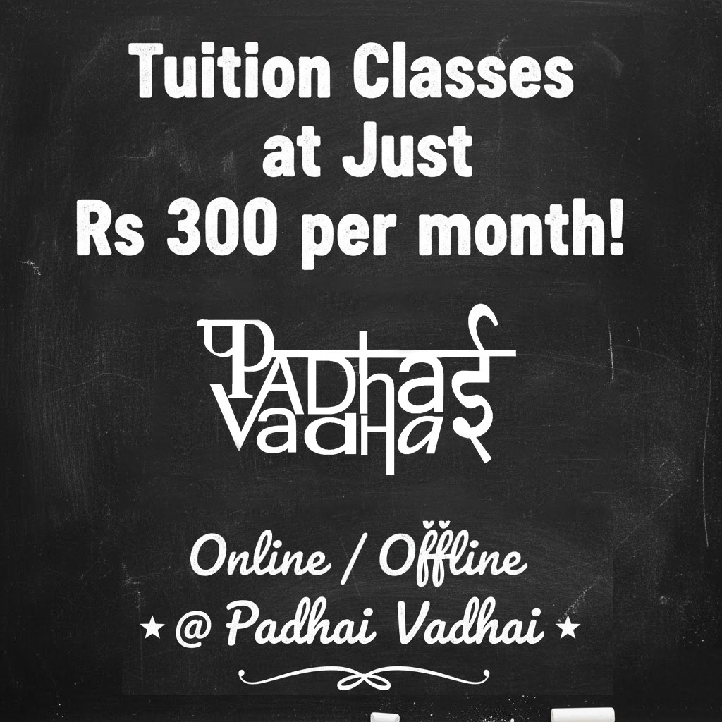 Padhai Vadhai brings you high-quality tutoring at an unbeatable price! Don't let high fees hold back your academic success.